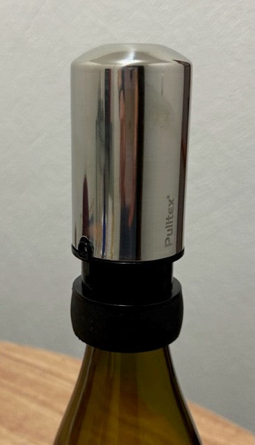Con esta bomba de vacío, que hace a la vez función de tapón, se extrae el oxígeno de una botella ya descorchada, conservando así las cualidades del vino durante varios días.